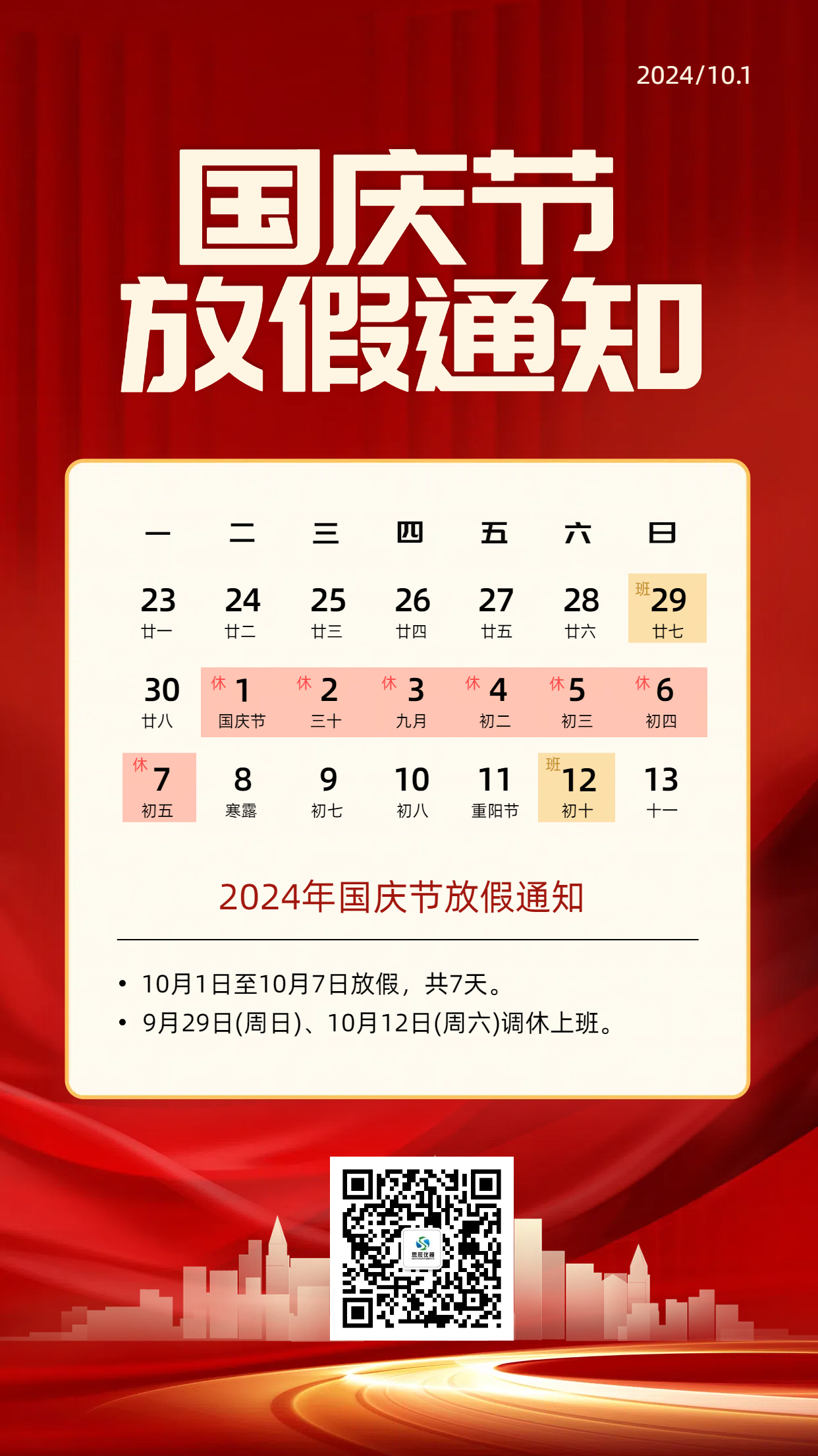 二零二四年思辰儀器國慶佳節(jié)放假通知