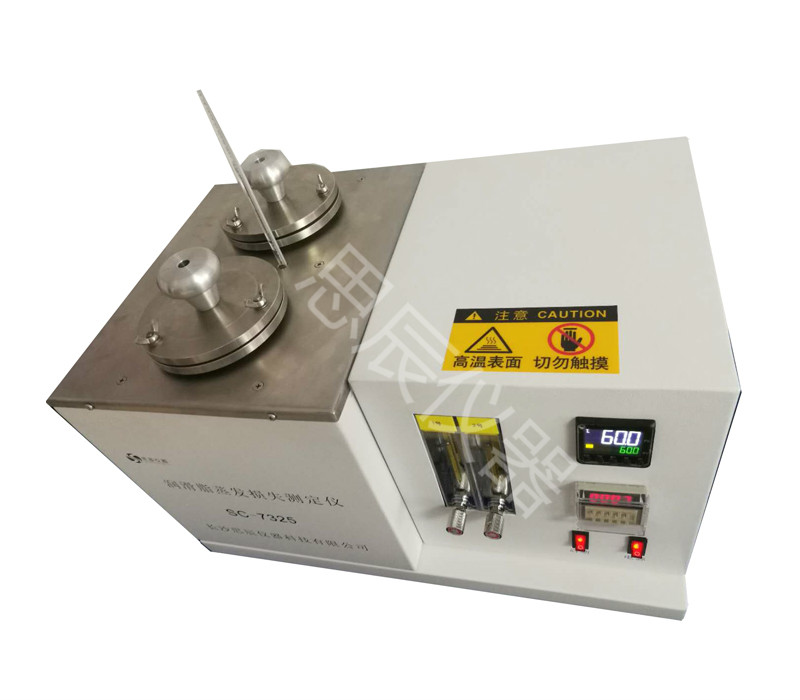 本儀器是根據中華人民共和國國家標準GB/T7325 所規定的要求設計制造的,適用于檢測潤滑油和潤滑脂的蒸發損失。試驗時把放在蒸發器里的潤滑劑試樣,置于規定溫度的恒溫浴中,熱空氣通過試樣表面22小時。根據試樣失重計算蒸發損失。