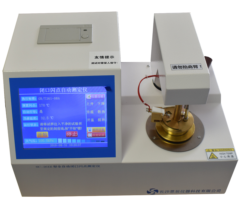 本儀器是按照中華人民共和國國家標(biāo)準(zhǔn)GB/T 24747-2023有機熱載體安全技術(shù)條件下《閉口閃點法》研發(fā)設(shè)計制造,測定可燃液體、帶懸浮顆粒的液體及在試驗條件下表面趨于成膜的液體和其他液體閃點的方法。適用于閃點高于40℃樣品,不適用含水油漆或含高揮發(fā)性材料的液體。 本儀器采用AMD公司的微處理器技術(shù)、彩色觸摸屏,中英文菜單操作;儀器根據(jù)標(biāo)準(zhǔn)規(guī)定自動點火、顯示、檢測并打印閃點值、自動冷卻等功能;具有